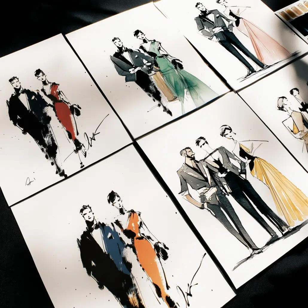 Gracias a su sensibilidad en la combinación de colores, texturas y gestos, Dase captura la esencia de las personas: una sonrisa espontánea, una mirada cómplice, la elegancia de un detalle que solo sucede ese día. Cada trazo se convierte en una pequeña historia que quedará plasmada en papel.