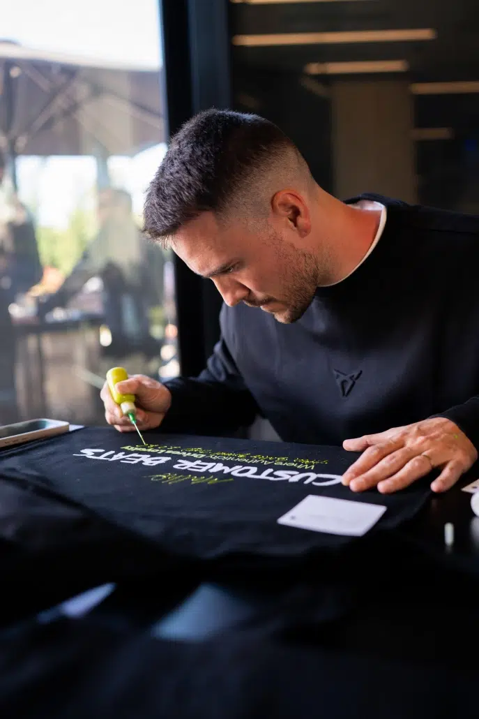 En el marco del After Sales Brand Day de SEAT y CUPRA, Dase desarrolló una intervención artística en directo diseñada para reforzar la experiencia de marca y fomentar la interacción con los asistentes. El proyecto se articuló en torno a dos elementos principales: un lienzo de gran formato y una acción de personalización en vivo.