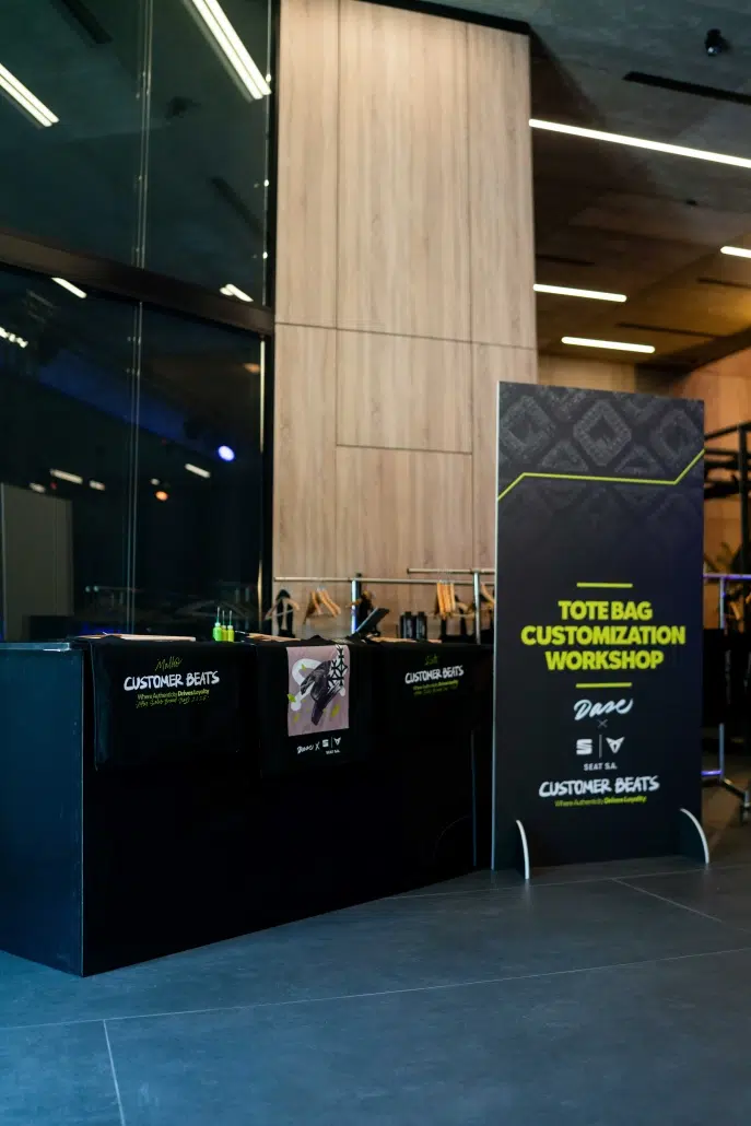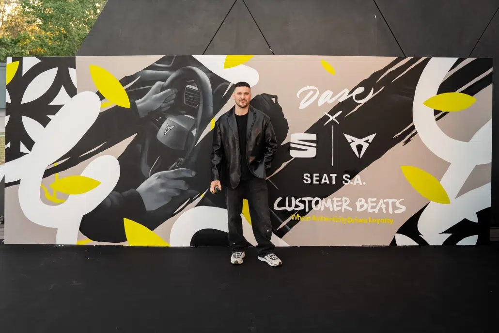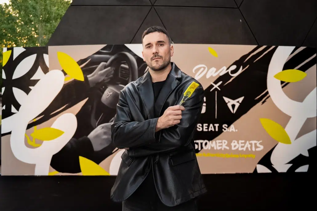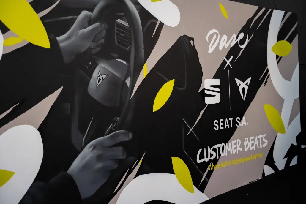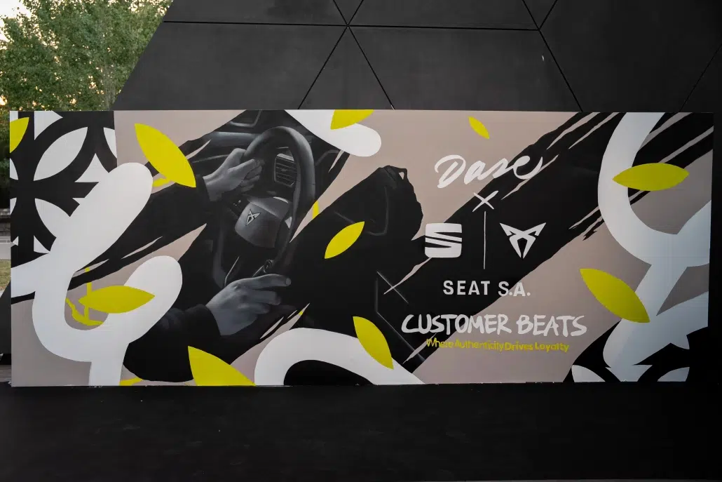 Dase participó en el After Sales Brand Day de SEAT y CUPRA en Barcelona con una activación de arte en vivo que transformó el evento en una experiencia inmersiva. A través de la pintura en directo de una obra de 10 m² y la personalización de tote bags, el artista generó un punto de interacción clave, alineado con los valores de innovación y sostenibilidad de ambas marcas.