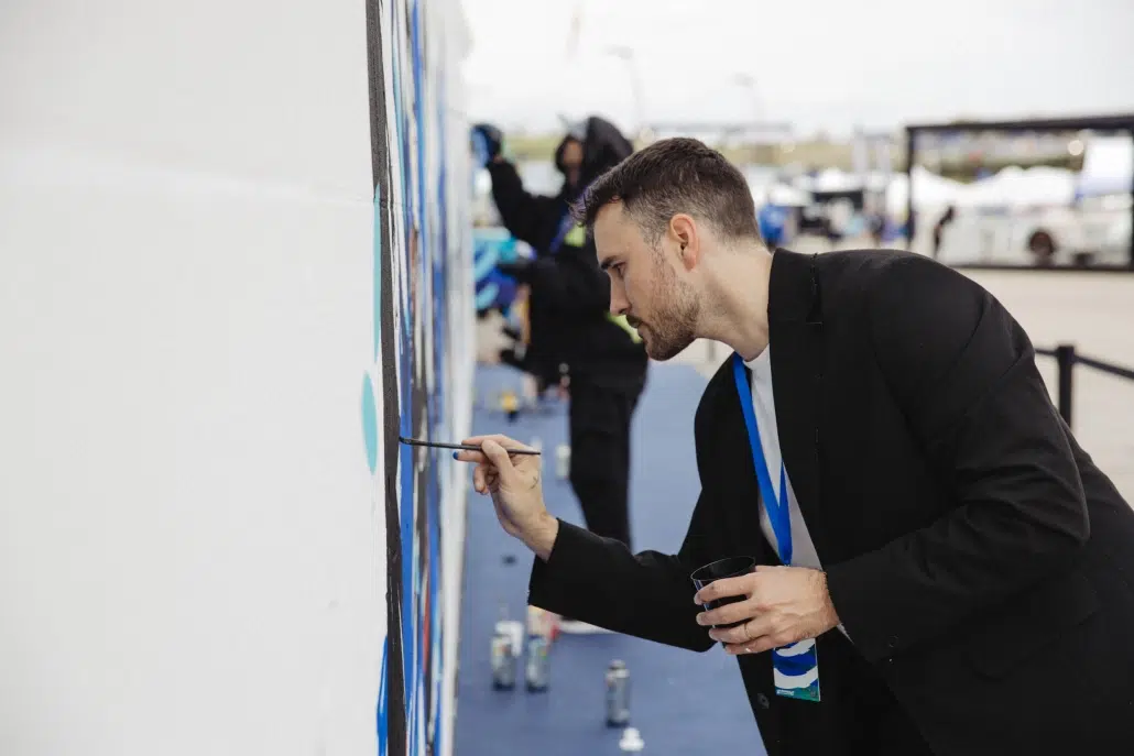 Ray-Ban inaugura su nueva tienda insignia en Paseo de Gracia, Barcelona, con Dase personalizando totebags.