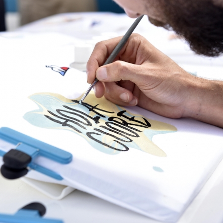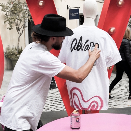 Para la promoción de la Pop Up Store de Nautica en el Centro Comercial "La Maquinista" en Barcelona, Basi Group contó conmigo para personalizar en directo las prendas de les interesades justo delante de la tienda.